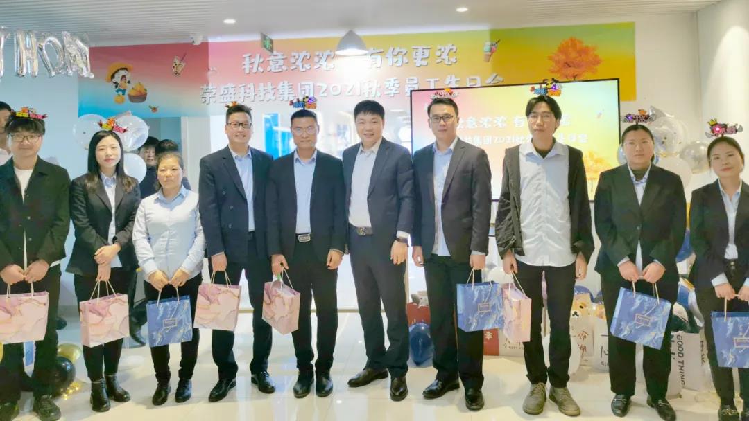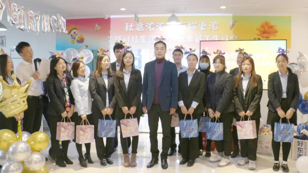 秋風(fēng)簌簌,揮毫潑墨遍將層林盡染;寒霜凝凝,靜默不語悄為初冬作序。為增加企業(yè)團(tuán)隊(duì)凝聚力,豐富員工精神文化生活,11月6日下午,榮盛科技集團(tuán)隆重舉辦了「秋意濃濃,有你更濃——2021秋季員工生日會(huì)」,集團(tuán)董事長楚科奇、總經(jīng)理王海軍、技術(shù)副總經(jīng)理崔戰(zhàn)濤、董事長助理張阿麗、外貿(mào)總監(jiān)張運(yùn)河等集團(tuán)領(lǐng)導(dǎo)與來自各個(gè)部門的60余名壽星齊聚一起,共慶生日,共享快樂時(shí)刻。
