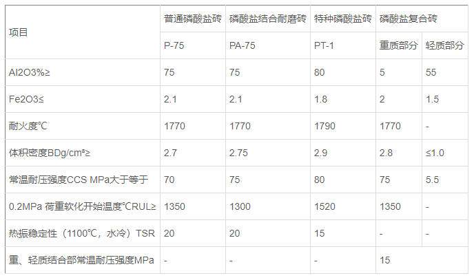 建筑材料工業(yè)標(biāo)準(zhǔn)JC350-1993“磷酸鹽結(jié)合高鋁質(zhì)水泥窯磚”按粘結(jié)劑分為兩種。磷酸酯高鋁磚結(jié)合劑的濃度為42.5%?50%磷酸液。編碼是P,鎖縫磚塊的代碼是PC。用工業(yè)磷酸和氫氧化鋁配制而成的高鋁酸型耐磨磚(簡(jiǎn)稱耐磨磚),由工業(yè)用氫氧化鋁配制,其摩爾比為Al2O3:P2O5=1:3.2,代號(hào)為PA。