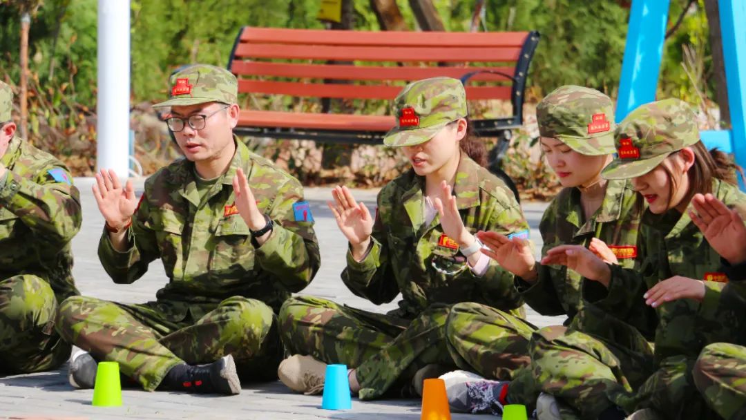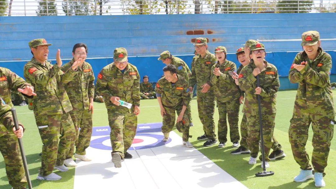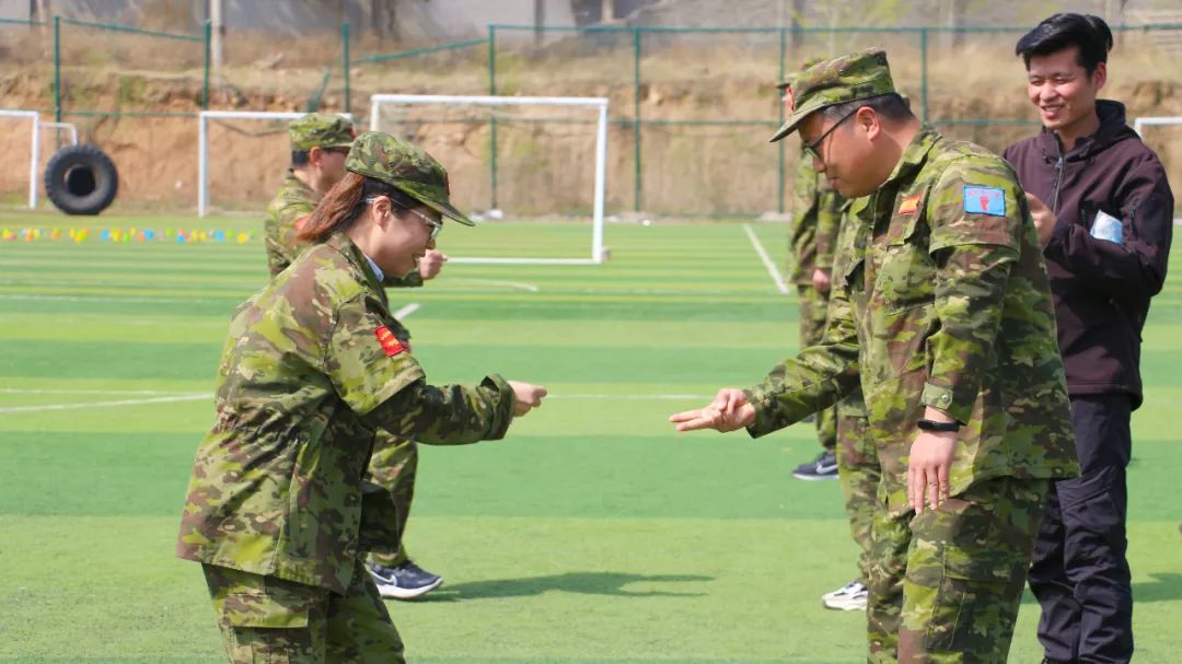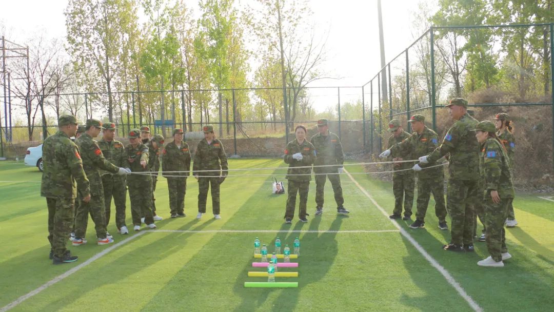開訓(xùn)前,在破冰啟航環(huán)節(jié)——【智勇通關(guān)】項目中,每組選一個大魔王來防守別隊,該隊隊員依次挑戰(zhàn)大魔王,石頭剪刀布定輸贏,贏了直接通過,輸了轉(zhuǎn)一圈,回來接著挑戰(zhàn),再輸即增加圈數(shù),直到全部隊員通過。大家把團隊當(dāng)成了自己的“城堡”,在“對抗魔王”中,每個隊員都拼盡全力,期待被幸運女神光顧,期待團隊能盡早完成任務(wù),大家的歡笑聲、喝彩聲灑滿了訓(xùn)練場。