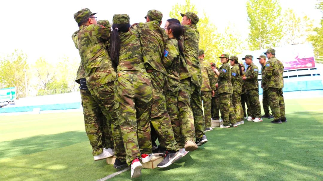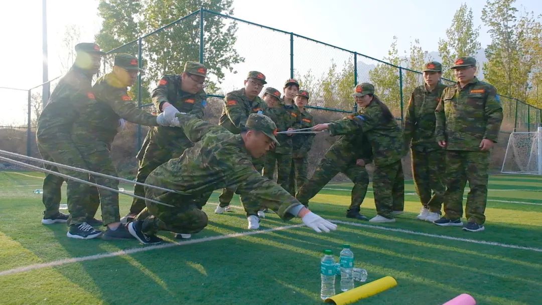 在【沙場點兵】項目,要求每個隊選出一個總指揮做將軍,一個協(xié)調(diào)者做軍師,剩余伙伴作為士兵。設(shè)定將軍起著總指揮的作用,但無法看見戰(zhàn)場的具體情況,其命令需由軍師來傳達(dá)。而軍師則只能用肢體語言告訴將軍該如何部署,士兵們則需要蒙著眼睛聽將軍命令,從而實現(xiàn)在沙場前進(jìn)、攻擊。當(dāng)規(guī)則定好,每個人所要做的就是各司其職。有人規(guī)劃部署,有人上傳下達(dá),有人依命令行事,雖然有理解錯誤、聽錯命令的情況發(fā)生,大家還是玩得不亦樂乎。在這個項目中,大家感悟到正確溝通的重要性。