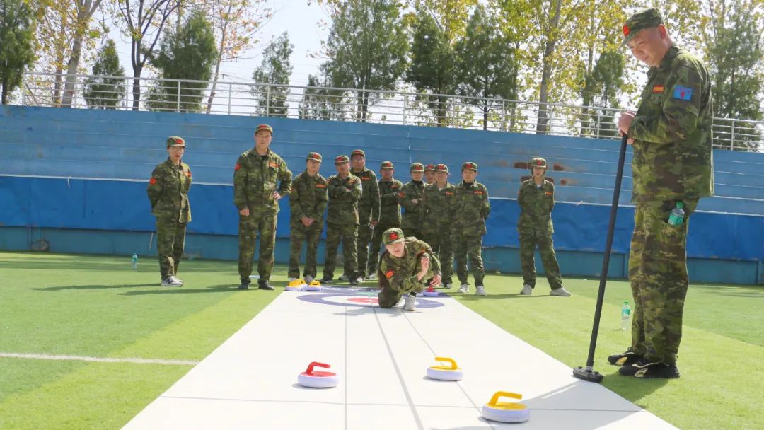 在【旱地冰壺】項目中,八個小組的隊員們一邊商榷對敵戰(zhàn)術(shù),一邊進(jìn)行任務(wù)分配。隨著一聲哨響,兩個賽隊同時開賽。隊員們?nèi)褙炞ⅰ⒛耢o氣,向前邁步?jīng)_刺,揮動手臂擲壺,冰壺按照隊員們設(shè)想的路線擊打到對方的冰壺,使其滑出得分圈并穩(wěn)穩(wěn)地停留在中心點,成功得分,大家歡呼雀躍,圍觀隊員們也紛紛叫好,掌聲、歡呼聲此起彼伏,好不熱鬧。